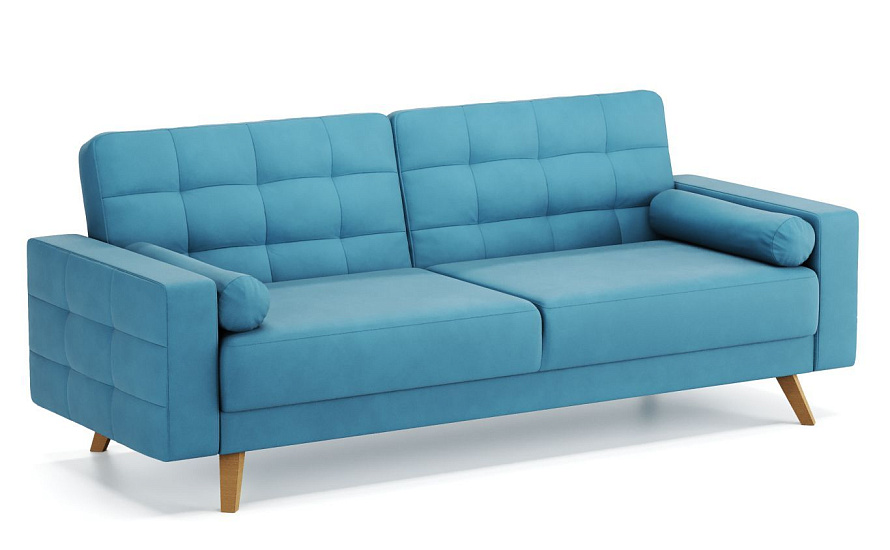 Диван Лакк выполнен в скандинавском стиле: лаконичные формы, опоры из натурального дерева, аккуратные утяжки на спинке и подлокотниках.